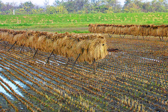 また、脱穀も昔ながらの天日干し(おだ掛け・はざ掛け・ぼっち)の後に行います。